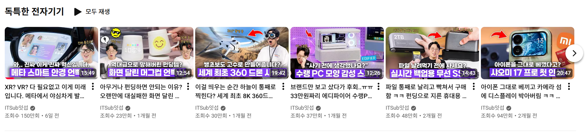 물론 시청자들의 조회수는 매우 정직해서, 처음 보는 업체의 처음 보는 제품이라면 여간 특이하거나 기묘하게 생기지 않고서야 조회수가 잘 나오지 않습니다. 또 워낙 한국 대중들에게 선보일 XR 기기들이 많지 않기도 하며, 그렇기에 주류 XR 기기들만 영상 목록에서 확인할 수 있죠.