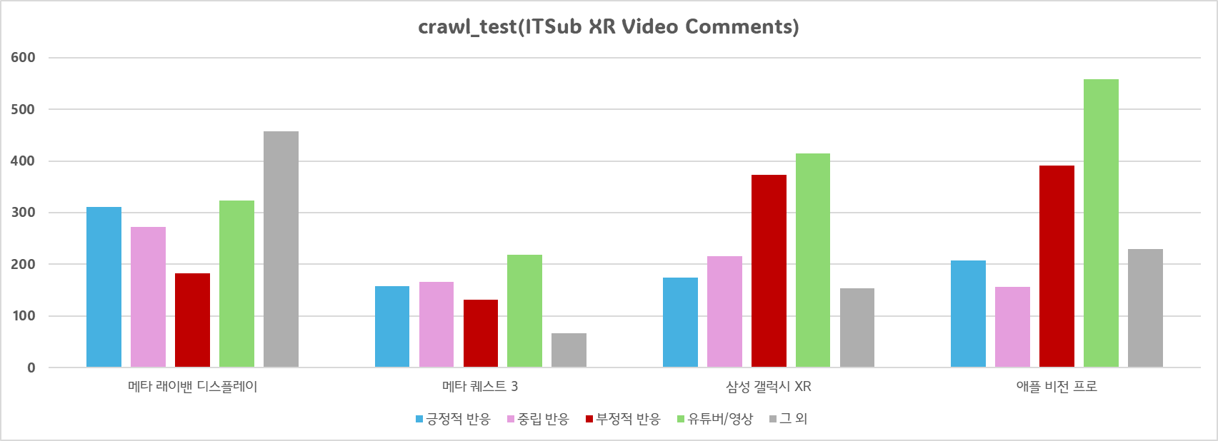 이에 아직 따로 허락을 받은 것은 아니지만(사실 댓글창은 공공 공간이기에, 허락이 필요 없긴 합니다!), 잇섭 님의 XR 기기 리뷰 영상 댓글 목록을 크롤링해보았고, 결과는 다음과 같습니다.